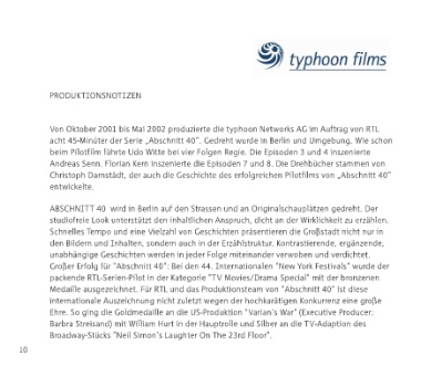Von Oktober 2001 bis Mai 2002 produzierte die typhoon Networks AG im Auftrag von RTL